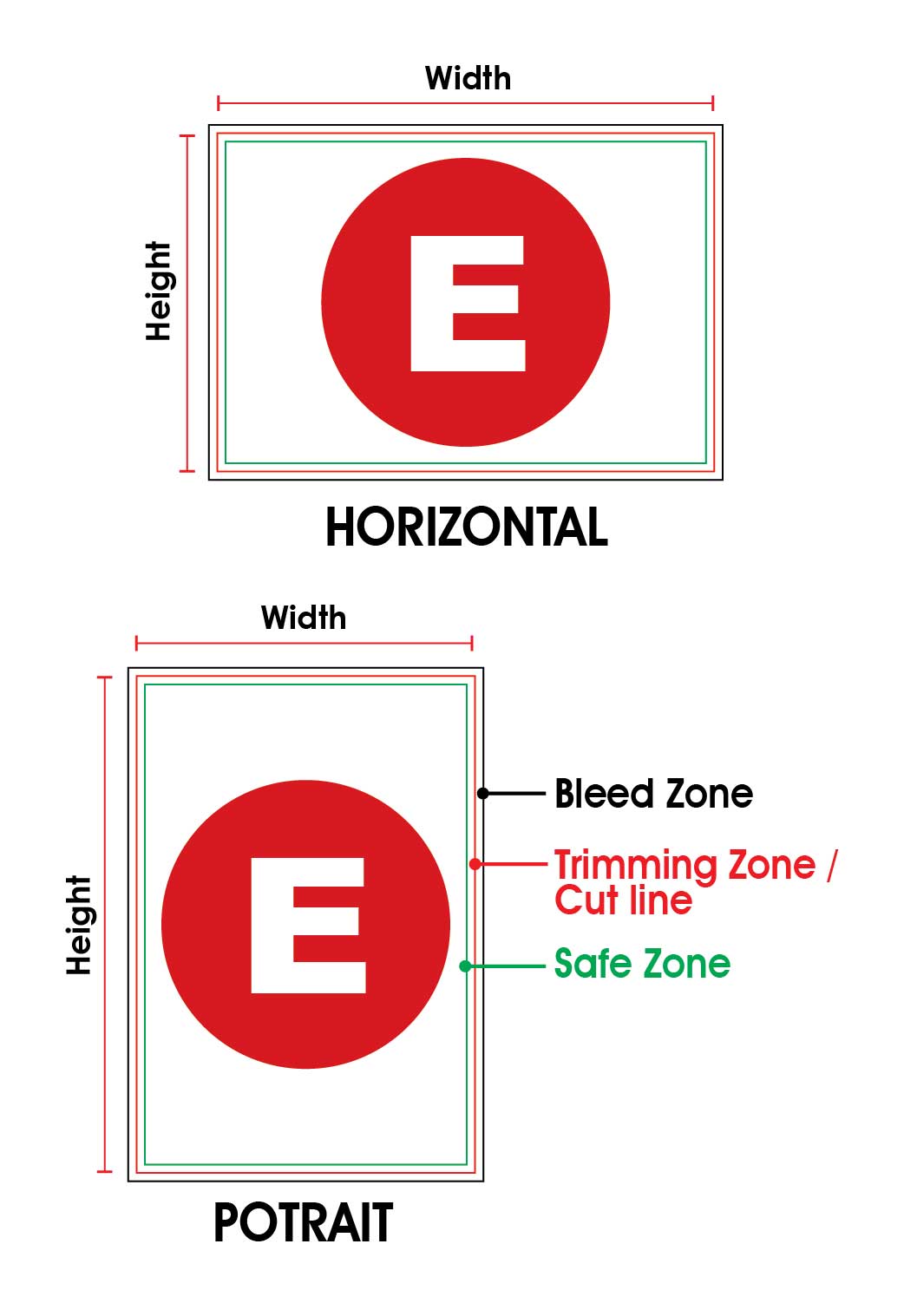 Safe zone refers to the area within the cut or trim line where you need not to worry about the important texts and graphics being trimmed off after diet cut.