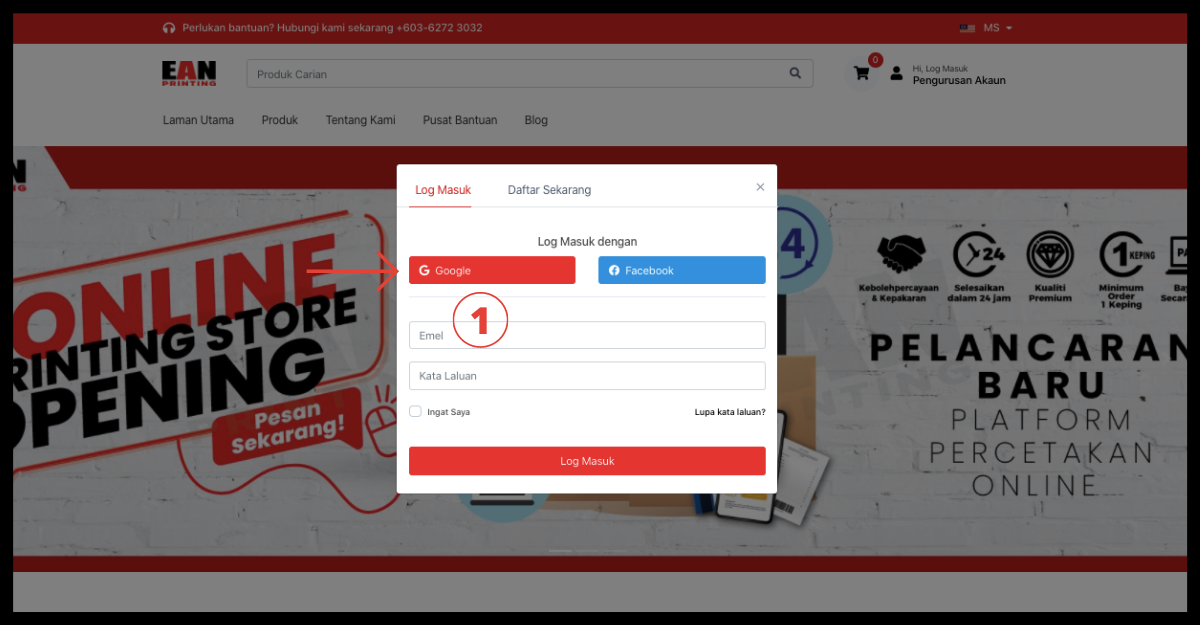Langkah 1: Log masuk atau daftar melalui Google / Facebook ke akaun anda.